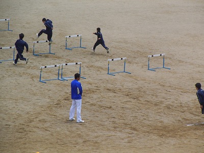 ハードルの練習です。タイミング狂うと・・・。痛い思いをした人もいたようですねぇ。