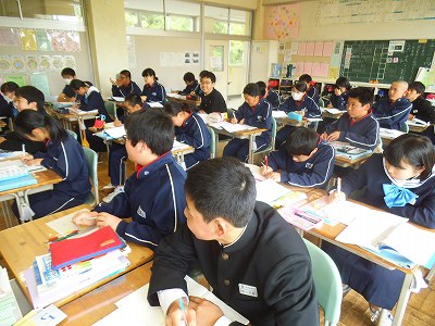授業のワンショット。分からないところは積極的に質問。素晴らしい習慣ですね。飛距離は?なかなかのジャンプです。友だちの意見にみんな注目。いろんな意見があるからおもしろいですね。