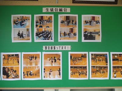 連休中の各部の活動を校長先生が撮影をして下さいました。練習試合や大会の様子が掲示してあります。