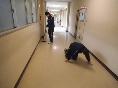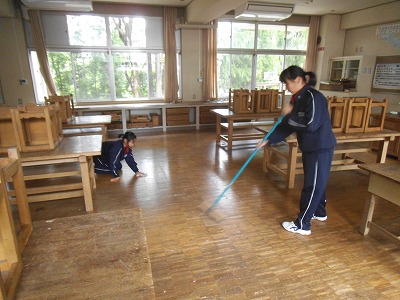 一生懸命に雑巾をかける姿が見られました。机の下、隅々など丁寧に拭いていました。さすがですね。