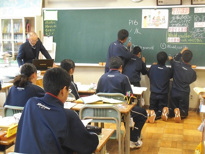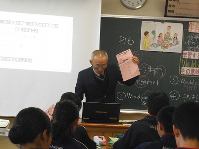 本文の内容を問題で確認。基本の文を全員理解できたかな?