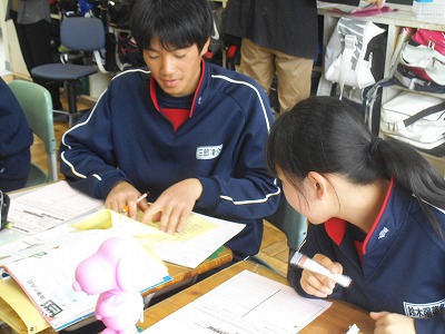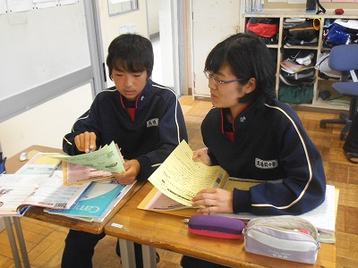 ペアで原稿を考えて発表です。「『食べたことない』って英語でなんて言うんですか?」と質問が出ました。まだ習っていない表現ですが話したいという気持ちがどんどん勉強を加速します。