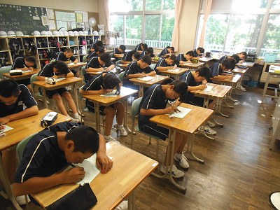 1年生もがんばっていますね。初めての漢字コンテスト。とめ、はね、はらいに注意ですね。