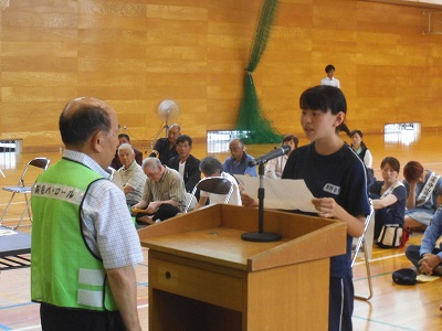 生徒を代表して感謝の言葉の発表です。落ち着いてはっきりと、大きな声で発表することができました。さすが、中学生ですね。
