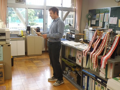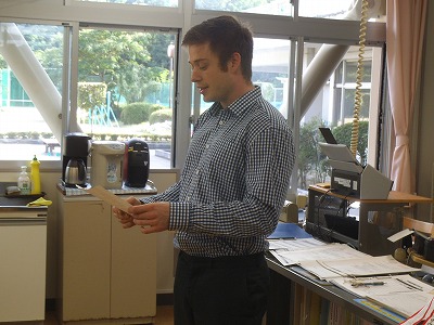 授業を終えたトム先生、職員室でご挨拶を頂きました。インドネシアに行かれてもお元気で!