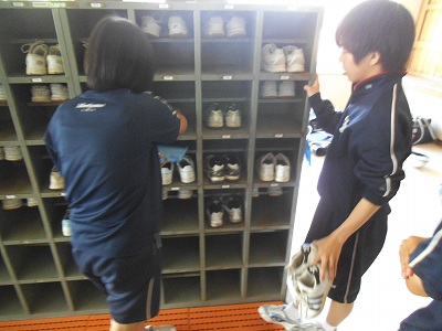 下足入れを掃除。明日登校してきた時、気持ちいいですね。ありがとう!