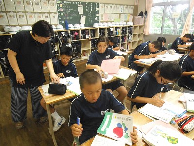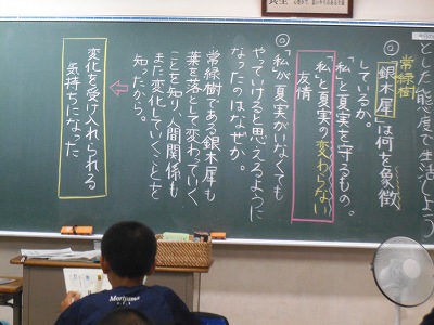国語の時間、文章から感じ読み取る練習。どこに注目をしたのかな?
