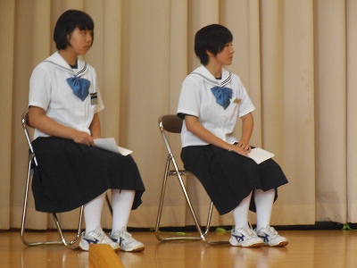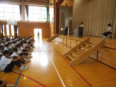 生徒会と各学年から、代表者が1学期を振り返り発表をしました。みんなあっという間の1学期だったと。それだけ充実した1学期だったということですね。