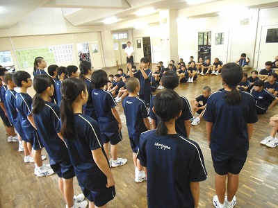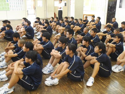 1年生、クラス合唱の中間発表を行いました。お互いの学級、気になる仕上がり具合は?隣の学級に刺激を受けて、また練習に熱が入りそうですね。