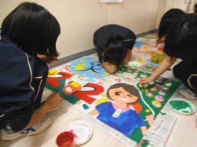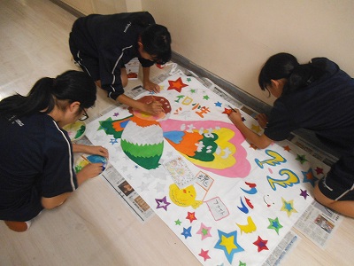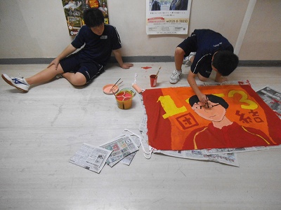 学級旗、だいぶできてきましたよ。完成間近ですね。