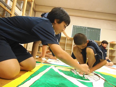 シンボルマーク、一般の生徒には非公開で制作中。図案が分からないように製作の様子をお伝えします。