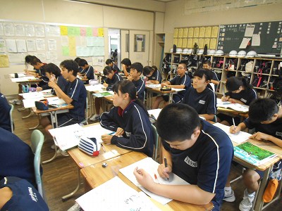 1年生の英語の授業。ここがひとつの山場でしょうか。三単現のSと言われるところ。ここをクリアできれば疑問文、否定文もオッケーに。しっかり復習しましょうね。