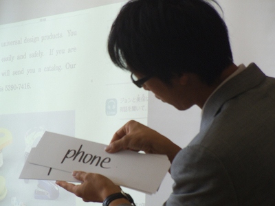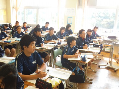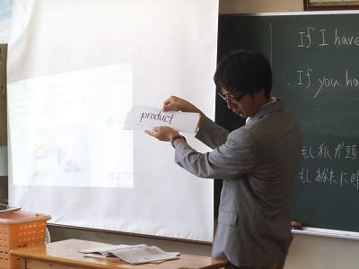 英語の授業から。フラッシュカードを使っての発音と意味の確認。昔ながらの方法とICTを取り入れての方法と使い分けてます。