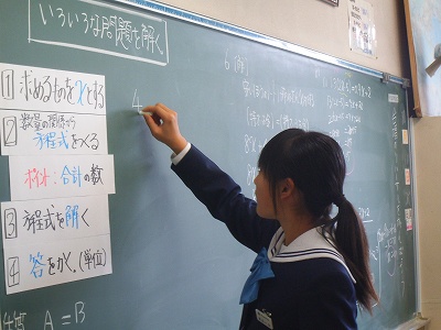 みんなで問題を解きました。出来た人?はーい(多数)黒板に出て書いてくれる人?・・・。みんな照れ屋さんですねぇ。ちゃんと発表してくれましたよ。