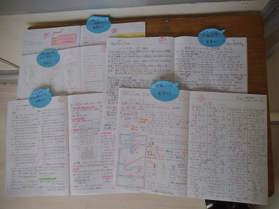 自主勉ノートコーナーです。友だちのノートを参考に、効率の良い学習方法を探しましょう。