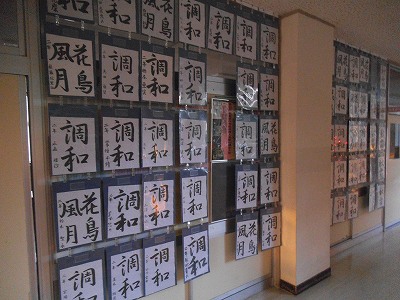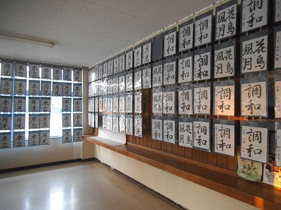 書道の掲示、昨日の放課後遅くまで作業していました。立派な作品たくさんですね。