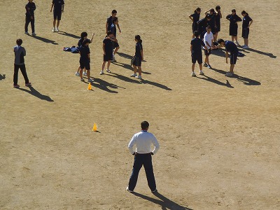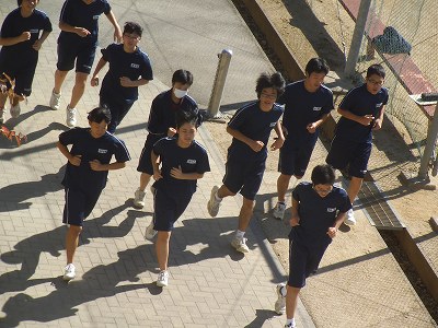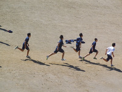 3年生、元気に体育です。トラックとロードに分かれ気持ちいい汗かいていました。最高の運動日和ですね。