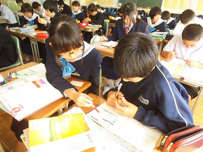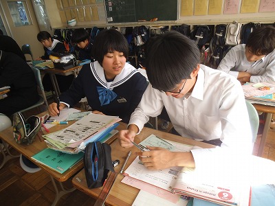 テーブルの上?それとも下?ネコや本、置き時計など自由にテーブルの上、下、周りに置きます。それを隣の人に英語で伝えます。きちんと伝わったかな?