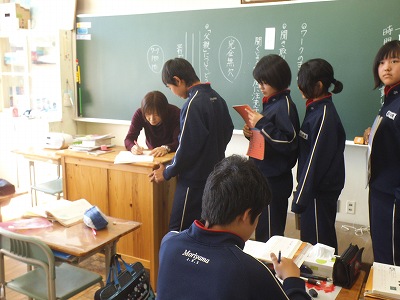ノートチェックをしてもらって、どこまでできたか確認中〜