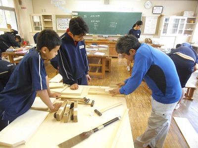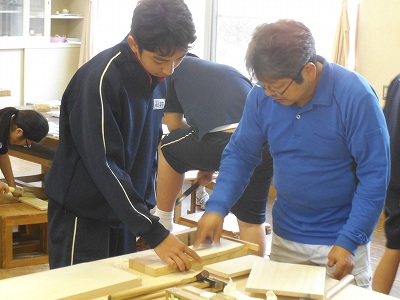 今回も外部講師に来ていただきました。のこぎりひきからカンナまで、丁寧に教えていただきました!