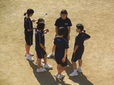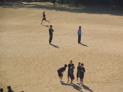 今日の体育は最高のお天気ですね。みんな気持ちよさそうです。