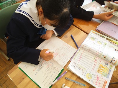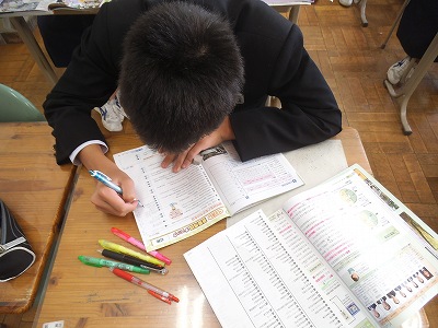 明日のテストに向けてワークに取り組んでいました。完璧ですね!