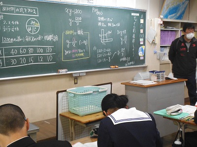 反比例について学習中。縦と横の関係で表を見ていくと、どんな関係があるかな?