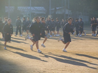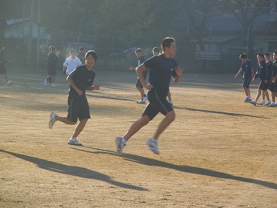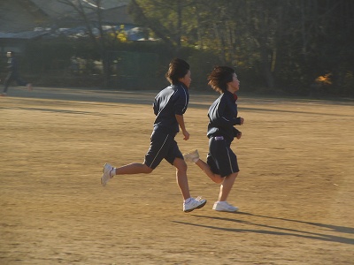 朝練、率先して先頭を走っているのは3年生。3年生、勉強も運動もがんばっています!