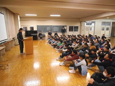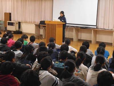 学区の小学校出身者から学習や生活、部活動について紹介がありました。とっても頼りになる先輩ですね!
