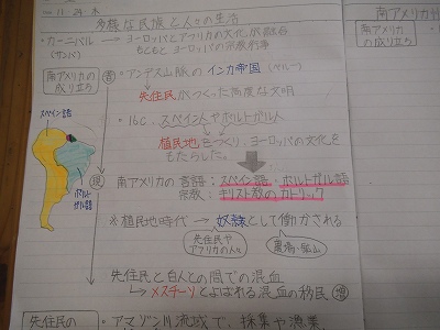 1年生の社会の授業。板書を上手にまとめているノートがありました。ノート作りをきちんと出来ればテスト対策も完璧!