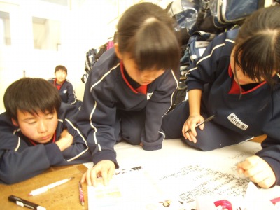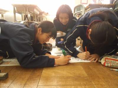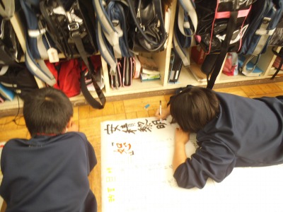なぜかこのクラス、床にくっついて書いています。首と腰、痛くないのかな?