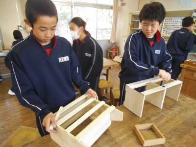 材料の切り出しは終わって組み立て作業。ここでも匠の出番。間違って打ち付けてしまった板を傷を付けずに外して打ち直し!まさに技ですね!