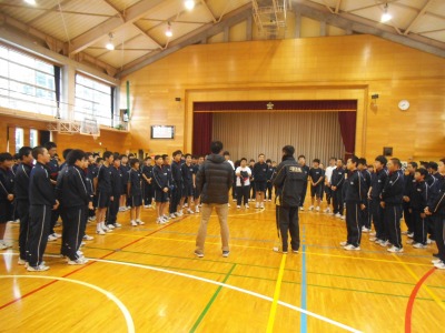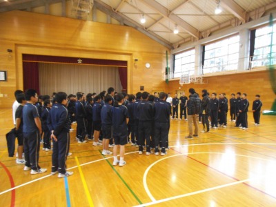 100名を超える1年から3年生が参加していました。雪にも負けず早起きです。
