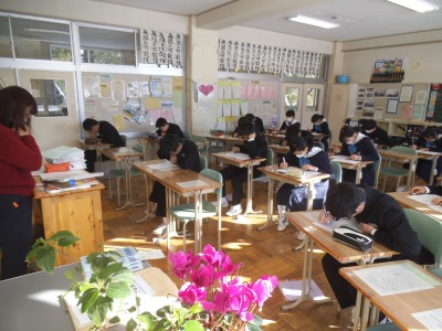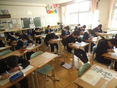 練習問題の真っ最中。早くも終わらせて見直しの生徒も。実戦力育成中。