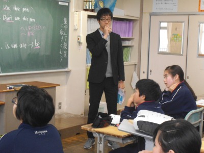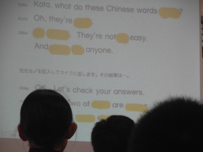 スクリーンに提示されたテキスト、所々が虫食いに。キーワードの所が隠されているのですが、みんなすらすら読んでいきます。繰り返し音読するうちに覚えてしまったようです。