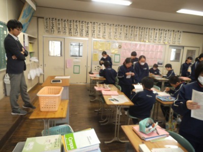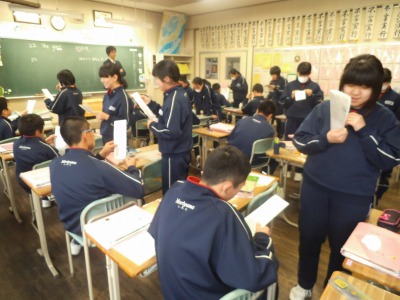 日本語を英文に直します。ワークシートの上から順に英語に直せたら座れます。制限時間内に座れるかな?