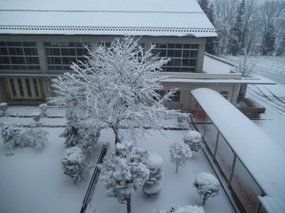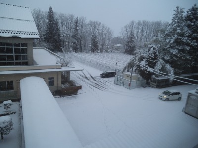 駐車場も真っ白