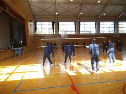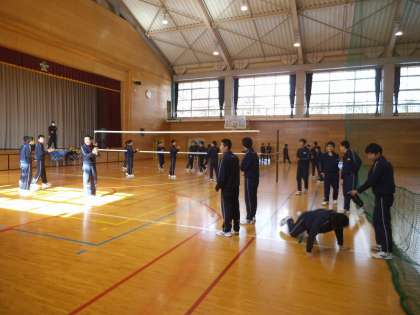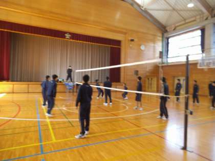3年1、2組の男子は、保健体育の時間にバレーボールの試合を行いました。ポイントを取るたび、歓声が上がりとても楽しそうにバレーボールを行っていました。