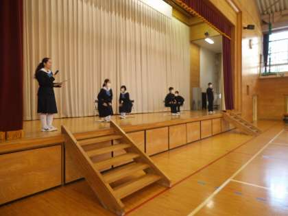 本日の5校時に体育館において、3学年の卒業式練習が始まりました。守中伝統の卒業式実行委員が主体となって、生徒に起立や着席、礼の仕方等を支持して、全体で合わせる練習を行いました。3年生は自分たちの卒業式を最高のものにしようと心を一つにして真剣に取り組んでいました。その様子を3学年の先生たちは温かいまなざしで見守っていました。