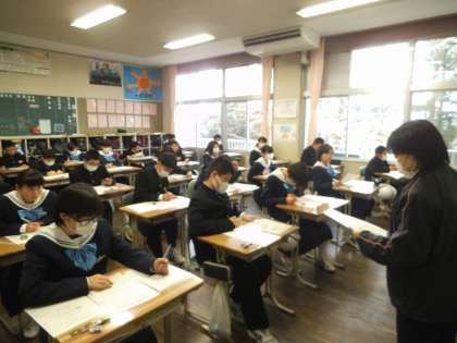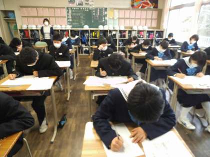 本日、第4回定期テスト2日目でした。2日目は、社会、技術家庭、国語を行いました。1年生は、今年度最後のテストをしっかり受けていました。