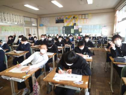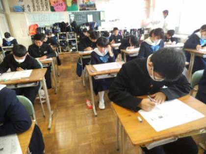 2年生も今年度最後のテストに対し、十分に時間をかけ準備してきたようでした。みんな真剣にテストに取り組んでいました。