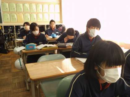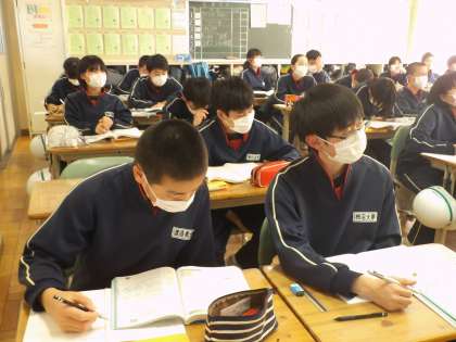 3年1組では、三平方の定理の単元の学習を終え、応用問題に取り組みました。難しい内容でしたが、先生の説明をしっかり聞き、問題を理解しました。