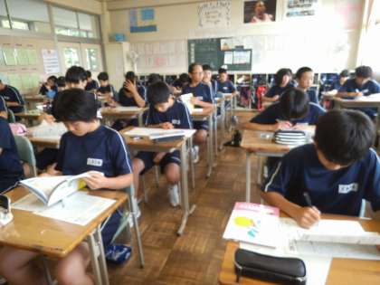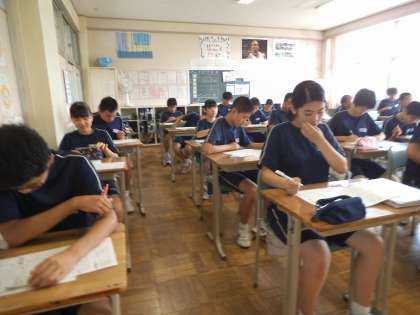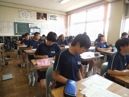 2年1組では、国語の時間に「生物が記録する科学」の単元テストを行いました。みんな真剣に問題にあたっていました。学期末が迫ってきており、どの教科もまとめの段階に入ってきています。