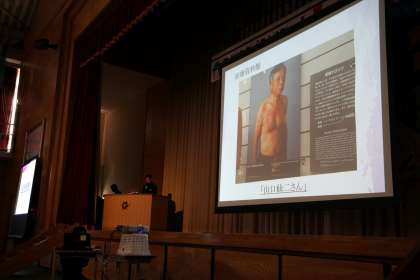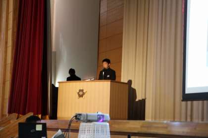 夏休みに長崎に学校代表として派遣された生徒の発表がありました。原爆投下により被災された方たちの思いを述べました。また、原爆に対する憤りの気持ちを述べました。