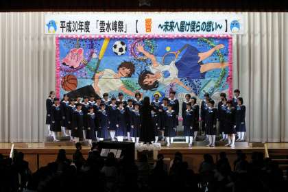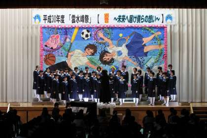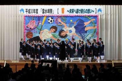 特設合唱部は、8月に行われた市中学校合唱祭で歌った「Gift」と「はじまり」を披露しました。練習の成果が十分に表れる素晴らしい合唱をしました。聴いていてとても感動しました。