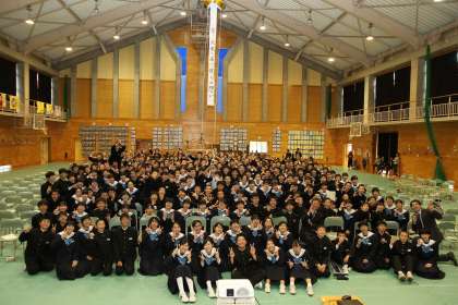 若手教員の音頭のもと、みんなで最高の笑顔で写真におさまりました。