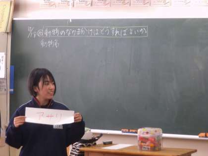 2年3組では、理科の時間に動物のなかま分けについて学びました。セキツイ動物が5つの仲間に分類できることを学びました。