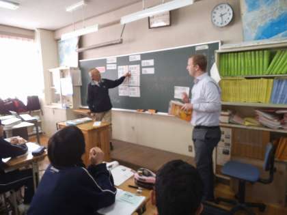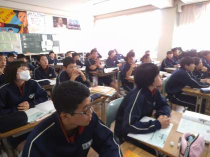 2年1組では、英語の時間に案内の表現について学びました。先生やAET(アシスタント イングリッシュ ティチャー)の会話をお手本として、それぞれが質問に対してしっかり答える練習を行いました。生徒は意欲的に取り組んでいました。