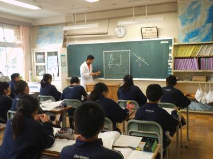 3年3組では、理科の時間に力を合成して合力を求める方法や力を分解して分力を求める方法を数多くの練習問題を行い、身に付けていました。