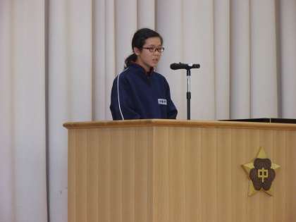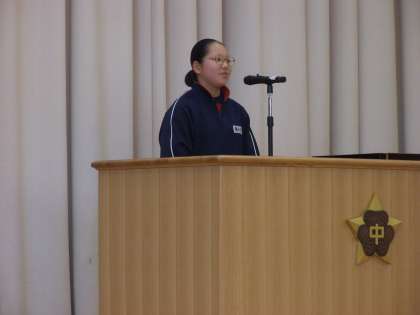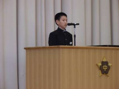 女子柔道部員の個人戦での報告に続き、第56回郡山市民体育祭の卓球競技で第3位に入賞した1年男子生徒と2年女子生徒が表彰報告をしました。それぞれが上位大会に向けての意気込みを述べました。